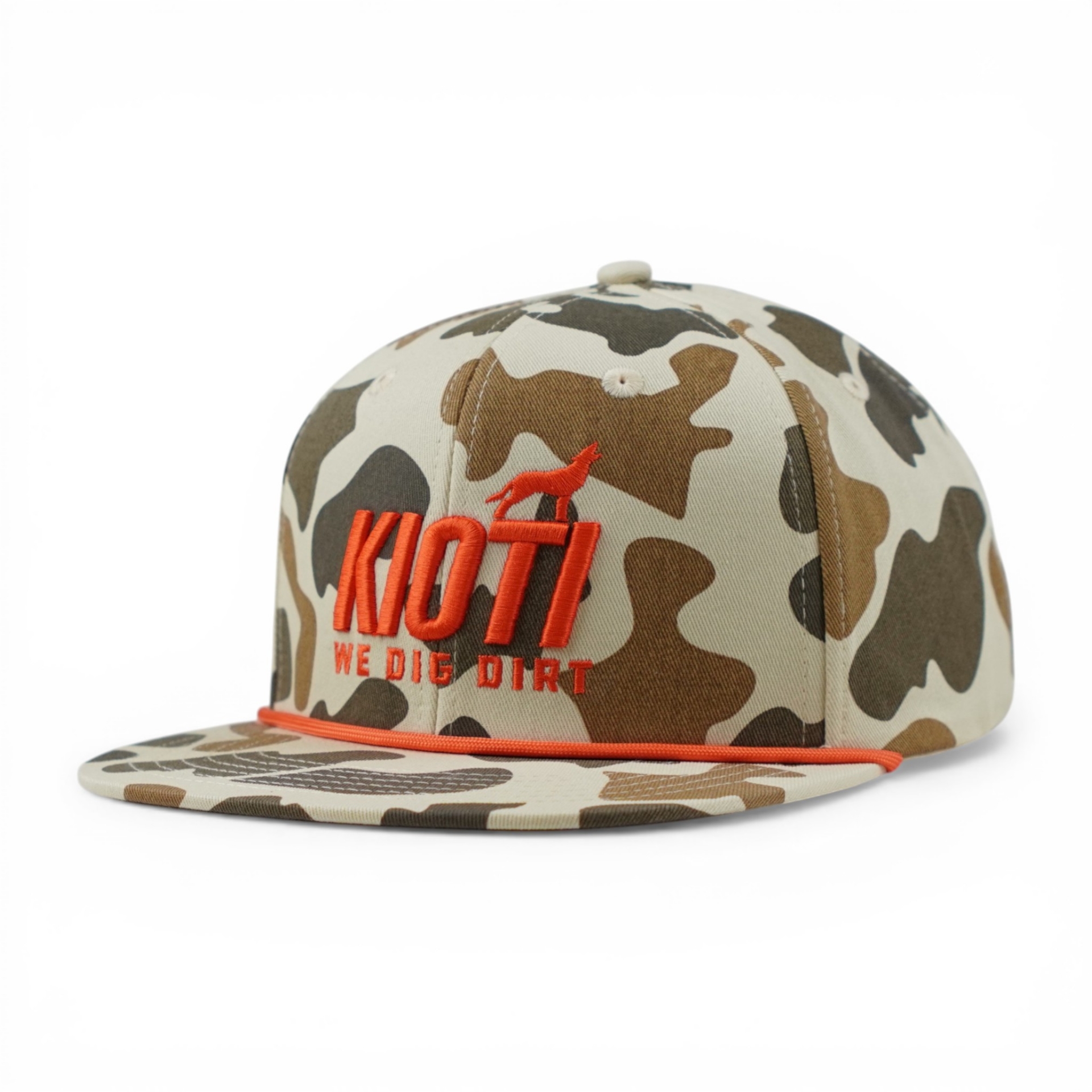 The KIOTI Terrain Rope Snapback brings a rugged, outdoors-inspired design to the KIOTI lineup. Featuring a structured crown with tonal camo styling, bold front logo detail, and a contrast rope accent across the bill, this hat combines classic workwear aesthetics with everyday comfort. The adjustable snapback closure and signature KIOTI tag complete the look, making it the perfect hat for the field or casual wear.